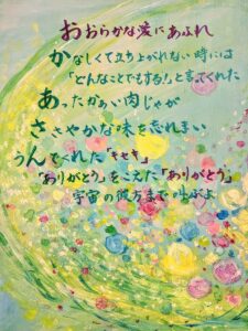 そして、母の子として自分を生んでくれたことは、人知を超えていて、宇宙の「奇跡」としかいいようがない、すごいことだと思いました。そう思うと、母の優しさそのものもすべて宇宙の「奇跡」だと思いました。