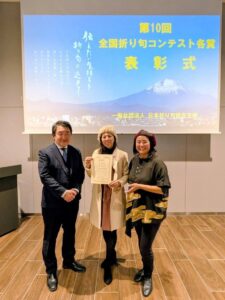 全国折り句コンテストで入賞し、表彰式に参加させていただきました。母のことをテーマにして「ありがとう」の折り句にしました。
